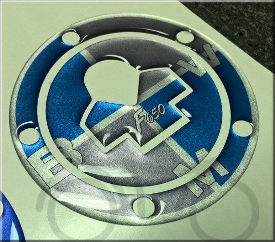 Adesivo in resina per BMW modelllo F 650. E' stato progettato e realizzato sulla base del disegno originale .