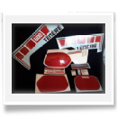 Gli adesivi sono sempre disponibili. Vengono prodotti su richiesta, non teniamo magazzino. Tempi di produzione dai 3 ai 5 giorni lavorativi. Pellicola PVC precotta della 3M serie 40 - 70 a seconda il modello. Si consiglia la finitura con vernice trasparente a protezione. Sgrassanti particolarmente aggressivi e solventi possono danneggiare la pellicola e gli inchiostri. In alternativa può essere realizzata in fase di produzione la laminazione degli stessi. Viene applicata una sottilissima pellicola trasparente a protezione degli stessi così da evitare la finitura con vernice trasparente. Applicazione semplice con acqua e all'occorrenza con sapone in piccola percentuale. Livello semplice per tutti gli adesivi tranne per quello del fianchetto dx il quale richiede più dimistichezza con i materiali per via della bombatura dello stesso che richiede la modellazione del PVC. E' possibile richiedere l'applicazione dello stesso tramite spedizione. Gli adesivi "monocross" vengono realizzati su PVC argento specchio. Durata degli adesivi con laminazione oltre 10 anni. Per qualsiasia altra info non esitate a contattarci.