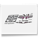 Composizione di circa 35 adesivi, intagliati e colorati elettronicamente compresi adesivi di avvertenze e informazioni tecinche come gli originali.