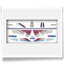 Composizione di circa 35 adesivi, intagliati e colorati elettronicamente compresi adesivi di avvertenze e informazioni tecinche come gli originali.