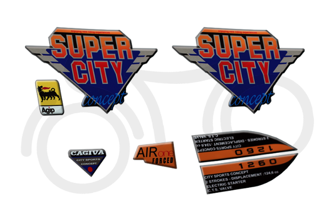 C A G I V A S U P E R C I T Y 1 2 5Adesivi in PVC laminati da applicare sopra la vernice originale.Protezione totale dalle intemparie, solventi e anti UV.