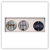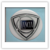 Adesivi RESINATI dello storico fregio italiano della Lancia con gli accessori e particolarità dell'epoca come "HF" o l'elefantino rosso.
