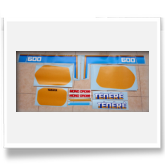 Gli adesivi sono sempre disponibili. Vengono prodotti su richiesta, non teniamo magazzino. Tempi di produzione dai 3 ai 5 giorni lavorativi. Pellicola PVC precotta della 3M serie 40 - 70 a seconda il modello. Si consiglia la finitura con vernice trasparente a protezione. Sgrassanti particolarmente aggressivi e solventi possono danneggiare la pellicola e gli inchiostri. In alternativa può essere realizzata in fase di produzione la laminazione degli stessi. Viene applicata una sottilissima pellicola trasparente a protezione degli stessi così da evitare la finitura con vernice trasparente. Applicazione semplice con acqua e all'occorrenza con sapone in piccola percentuale. Livello semplice per tutti gli adesivi tranne per quello del fianchetto dx il quale richiede più dimistichezza con i materiali per via della bombatura dello stesso che richiede la modellazione del PVC. E' possibile richiedere l'applicazione dello stesso tramite spedizione. Gli adesivi "monocross" vengono realizzati su PVC argento specchio. Durata degli adesivi con laminazione oltre 10 anni. Per qualsiasia altra info non esitate a contattarci.