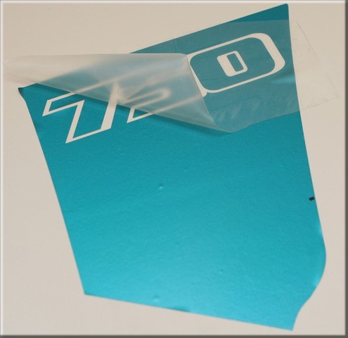 Composizione con PVC della 3M di colore VERDE ACQUA METALLIZZATO campionato sulla tonalità originale della motoi..