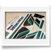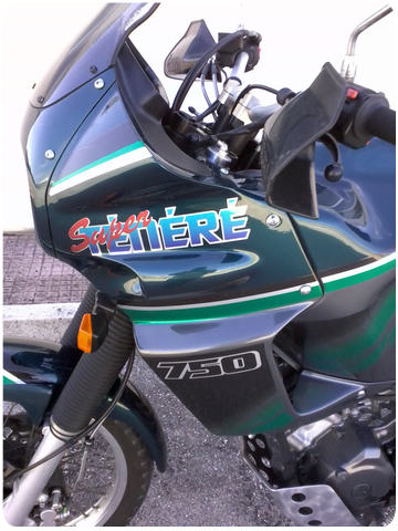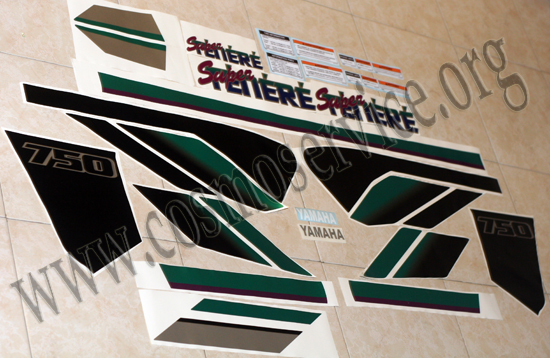 Serie XTZ 750 Super Tenere (3LD) "GROTTO" Serie completa di adesivi in PVC predisposti per essere installati sotto trasparente. Il disegno ricalca le esatte linee della versione 3LD prodotta negli anni 1995-96 comunemente denominata "DAQ", ma con colori e sfumature con il verde smeraldo metallizzato.